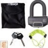 Het slot heeft een 8 mm dikke vierkante schakel gemaakt van speciaal gehard staal en is verkrijgbaar in 85 cm (1800 gram), 110 cm (2200 gram) en 140 cm (3185 gram).