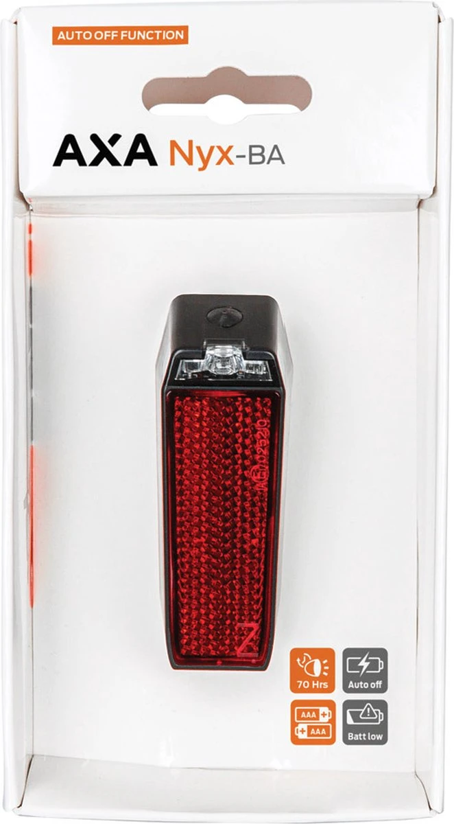 Het achterlicht heeft een makkelijk te bedienen aan/uit schakelaar, en beschikt daarnaast over een auto off functie. De lamp zal na 5 minuten van stilstand automatisch uitgaan. Wanneer de (meegeleverde) 2 AAA batterijen bijna op zijn, geeft het achterlicht dit aan. Hierdoor ben je altijd op tijd met vervangen en kun je weer veilig de weg op.