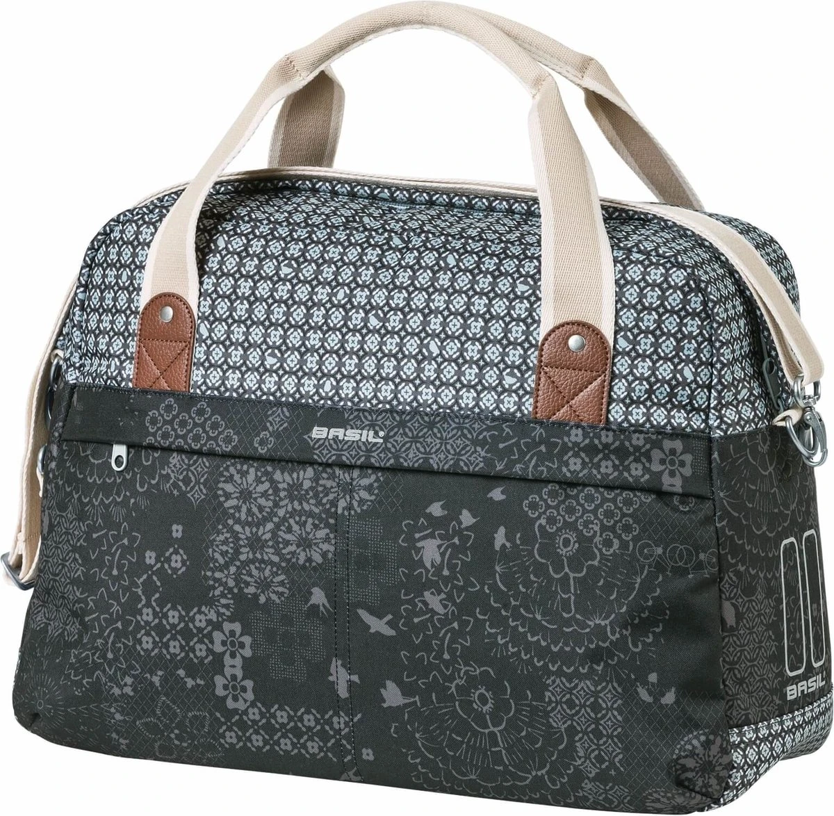 De Basil Bohème fietsschoudertas is een enkele blauwe fietstas die er stijlvol uitziet, maar ook nog eens erg makkelijk in gebruik is. De tas heeft een inhoud van 18 liter en de bohomien print zorgt voor een elegante uitstraling. Door het Hook-On System is de tas geschikt voor vele bagagedragers (ook e-bike) en kun je hem eenvoudig aan je bagagedrager haken. Dit systeem is mooi weggewerkt met behulp van een apart ritvakje. De tas beschikt over twee hengsels en een afneembaar schouderhengsel, waardoor je hem als schouder-, hand- en fietstas kan gebruiken. Een fietsrit naar de supermarkt of een lunchafspraak met die vriendin, deze fietstas maakt jouw (boho) look compleet en de fietsrit makkelijker. De fietstas is voorzien van een binnenzak, stevige binnenvoering, kunstlederen details en een ritssluiting. Door het waterafstotende polyester blijft de inhoud van de tas droog bij een kleine regenbui. De reflectiedetails op beide kanten zorgen ervoor dat je beter zichtbaar bent in het donker. Deze Basil Bohème fietsschoudertas is verkrijgbaar in meerdere kleuren waaronder rood en groen. Ben jij fan van mixen en matchen? Neem dan een kijkje bij de bijpassende bohemien zadelhoezen en fietsbellen. Eigenschappen: De fietstas is geschikt voor diverse bagagedragers (ook e-bikes). De tas is gemakkelijk te bevestigen met behulp van het Hook-On systeem. De tas kan door het waterafstotende polyster tegen een regenbuitje, maar zal na een dag in de regen niet meer kurkdroog zijn. De fietstas is multifunctioneel en kan als fiets-, schouder- en handtas gebruikt worden. De fietstas is veiliger door reflectiestukken en groene klipje, zodat je de tas niet gemakkelijk verliest.