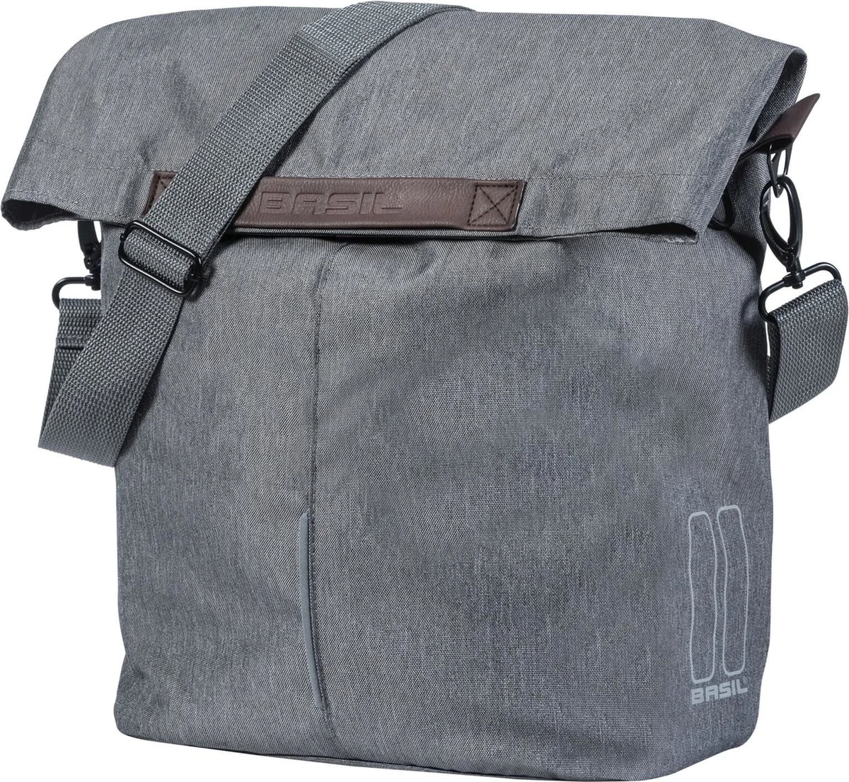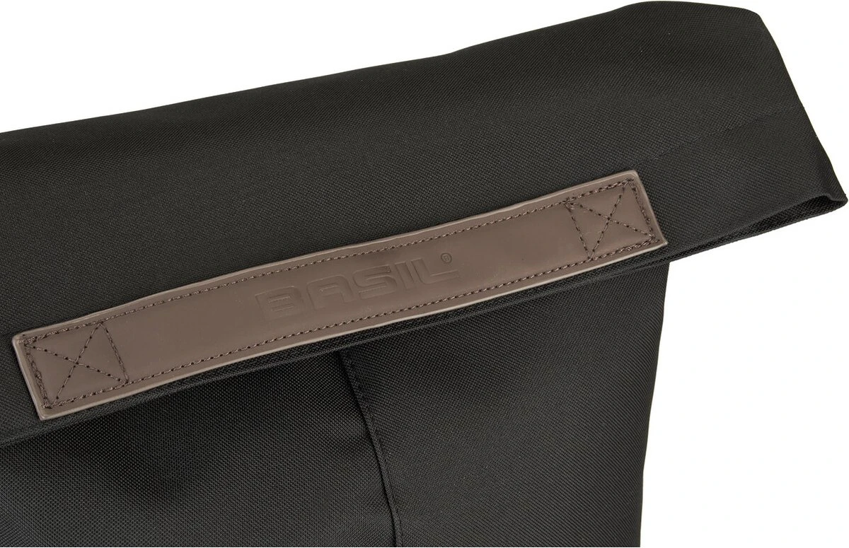 De Basil City Shopper: de ideale fietsshopper die past bij het uptempo van de city. Werk, vrienden, uitgaan, naar de markt of juist even helemaal zen na een uurtje yoga. Deze zwarte shopper is niet te zwaar, niet te groot en toch ruim (maar liefst 14 tot 16 liter) en sterk genoeg om flink wat spulletjes of boodschappen in mee te nemen. De tas heeft een waterkerende vouwsluiting met magneet en voorkomt daarmee inregenen. Deze zwarte tas bevestig je makkelijk aan de bagagedrager van je fiets of hang je gewoon nonchalant over je schouder met de afneembare schouderband. Dankzij de vegan leder handgrepen draag je de tas comfortabel. De tas heeft een binnenvak met rits en een bevestigingsmogelijkheid voor LED-verlichting. Eigenschappen: Je draagt de City shopper aan de vegan leder handgrepen of met de afneembare schouderband. Met het Hook-On systeem bevestig je de shopper snel achterop jouw fiets. Dankzij de reflectie op alle zijden ben je beter zichtbaar in het donker.