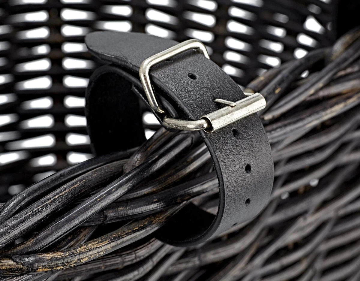 De Basil Darcy L is een stijlvolle rotan fietsmand met een ruime inhoud voor voorop je fiets. Deze fietsmand maakt jouw fietsrit niet alleen makkelijker maar ook leuker, of je nu gaat picknicken in het park of een fietsritje naar de supermarkt maakt. De rotan mand is handgemaakt en zwart gemêleerd van kleur, wat zorgt voor een robuuste uitstraling. Met behulp van de lederen riempjes is de mand eenvoudig voorop het stuur te hangen of op de Basil voordrager te monteren. De inhoud van de mand is 35 liter waardoor er ruimte genoeg is voor je boodschappen of picknickspullen. Deze Basil Darcy fietsmand hoort bij de Basil Noir collectie. Er zijn van deze lijn diverse fietstassen en accessoires zoals zadelhoezen en fietsbellen verkrijgbaar. Wil jij graag een Basil voordrager voor aan je stuur? Kijk dan hier voor dit systeem. Eigenschappen: Voor het (feilloos) bevestigen van deze mand maak je gebruik van de lederen riempjes. Door de ruime inhoud van 35 liter kan je er heel wat boodschappen en picknickspullen in kwijt. Het natuurlijke materiaal rotan zorgt voor een natuurlijke maar stijlvolle uitstraling.