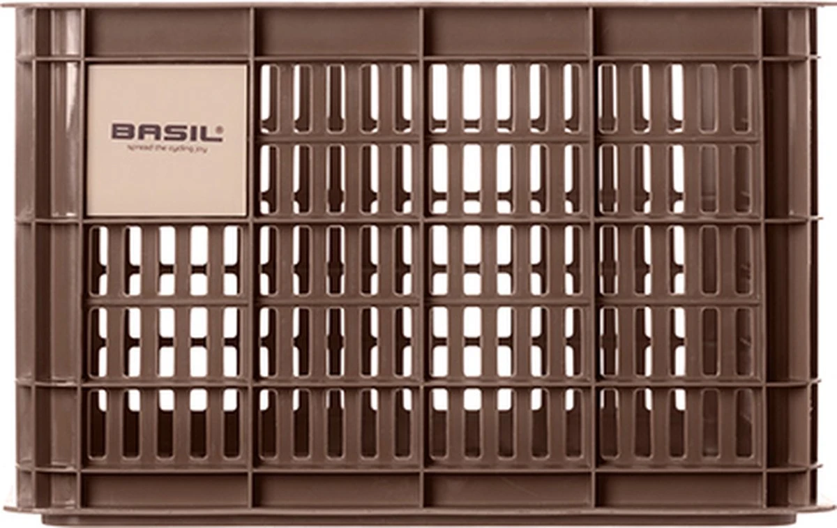 De Basil fietskrat in de maat M is een bruine fietskrat voor op een dames- of herenfiets. De fietskrat is gemaakt van duurzaam materiaal en heeft een inhoud van 29,5 liter.