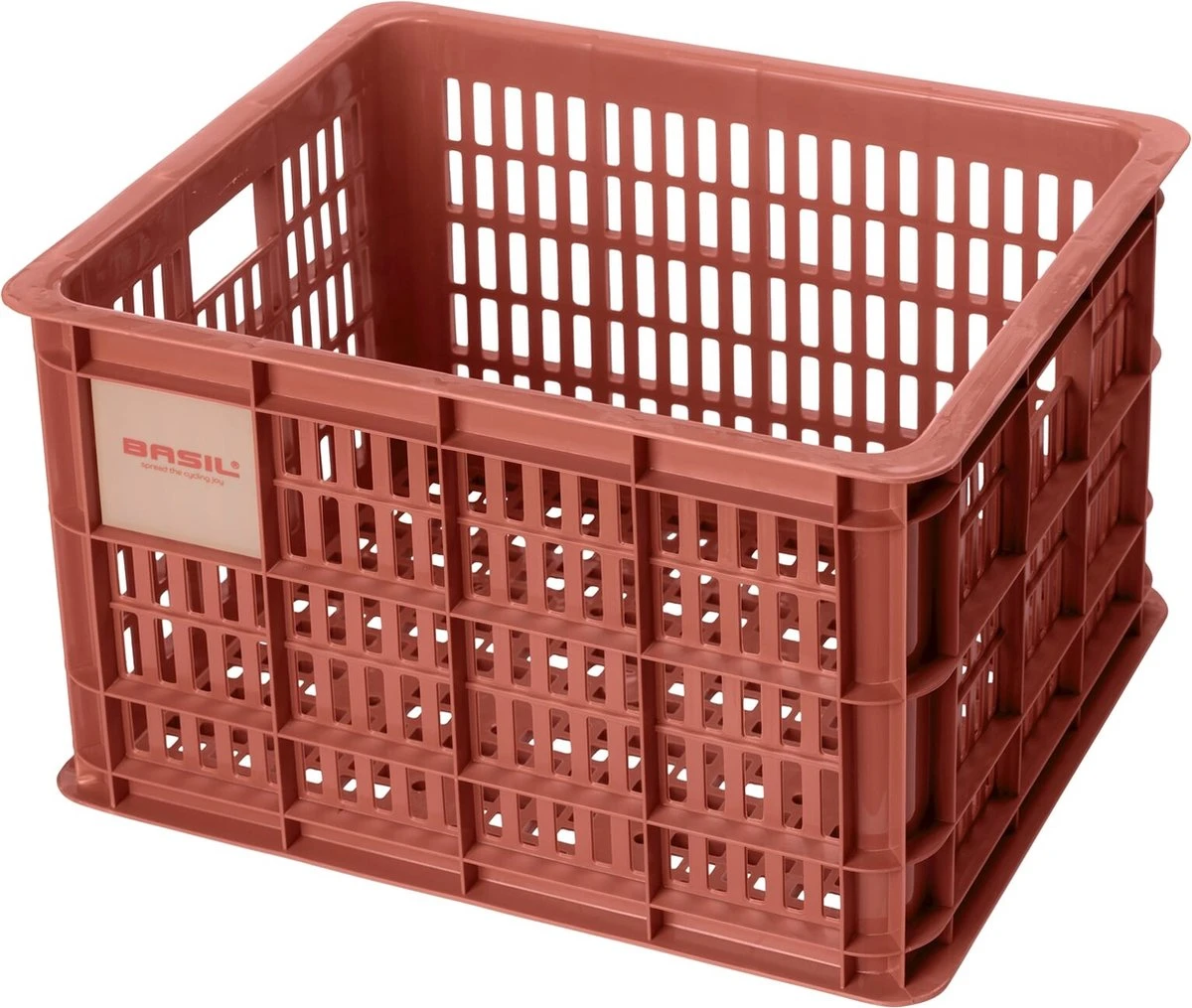 De Basil fietskrat in de maat M is een groene fietskrat voor op een dames- of herenfiets. De fietskrat is gemaakt van duurzaam materiaal en heeft een inhoud van 29,5 liter.