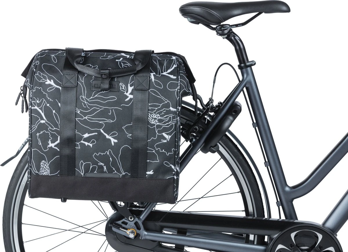 De Basil Grand is een stijlvolle en handige shopper met een inhoud van 23 liter. Hij is in het zwart met een bloemenprint uitgevoerd en is ideaal voor het doen van boodschappen.
