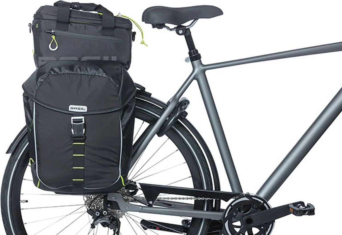 - Je monteert de MIK Double Decker gemakkelijk op de brug van een dubbele MIK fietstas met voorgemonteerde MIK-adapterplaat.