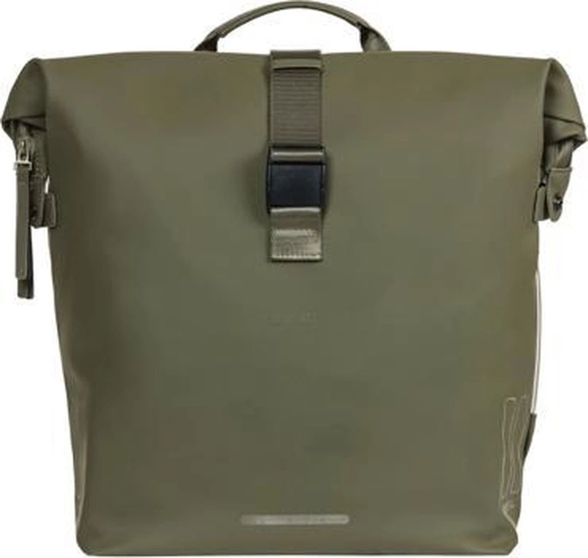 Ben je op zoek naar een ruime fietstas die er ook nog eens mooi uitziet? Dan is de Basil SoHo dubbele fietstas Nordlicht in de mosgroene kleur echt iets voor jou. Gemaakt van mat PU-materiaal dat erg zacht aanvoelt* met een inhoud van 41 liter. De tas is waterdicht (IPX3), waardoor jij jouw spullen altijd droog meeneemt. De tas sluit je af met een roltop die je aan de zijkanten van de tas met drukknopen bevestigt. Aan jouw veiligheid is ook gedacht. De tas is namelijk voorzien van Nordlicht Technology**, een geïntegreerde LED-strip. Zo val je in het donker beter op. De LED-verlichting werkt op 3x AAA batterijen (apart verkrijgbaar). Heb je veel en zwaardere spullen in je tas? Dan kun je de tas combineren met de Basil Afstandhouder (apart verkrijgbaar). Deze houder voorkomt dat de tas in de spaken van je fiets komt. Je bevestigt de Basil SoHo dubbele fietstas eenvoudig op je bagagedrager met het Universal Bridge systeem. Dankzij het Universal Bridge systeem kun je kiezen uit hoe je de tas wilt bevestigen. Het bevestigen kan met de voorgemonteerde riempjes. Of in combinatie met het Basil DBS systeem (afneembare bagagedragerplaten) of een adapterplaat zoals MIK. Beide systemen dien je apart aan te schaffen. Eigenschappen: Waterdichte dubbele fietstas inclusief roltopsluiting. Voorzien van geïntegreerde LED-verlichting (batterijen apart verkrijgbaar). Ruime inhoud van 41 liter totaal. Gemakkelijk te bevestigen op (bijna) elke bagagedrager, dames-, herenfiets en elektrische fiets. *Schuren tegen wat ruwere oppervlakten kan ervoor zorgen dat het materiaal beschadigt. De tas blijft ook dan waterdicht met dezelfde hoge IPX3 norm. **Nordlicht Technology kun je gebruiken als een aanvullende verlichting en treedt op geen enkele wijze in de plaats van de wettelijk vereiste fietsverlichting. Voor het gebruik van alle verlichting dien je te allen tijde de wettelijke regels met betrekking tot fietsverlichting van het land op te volgen.