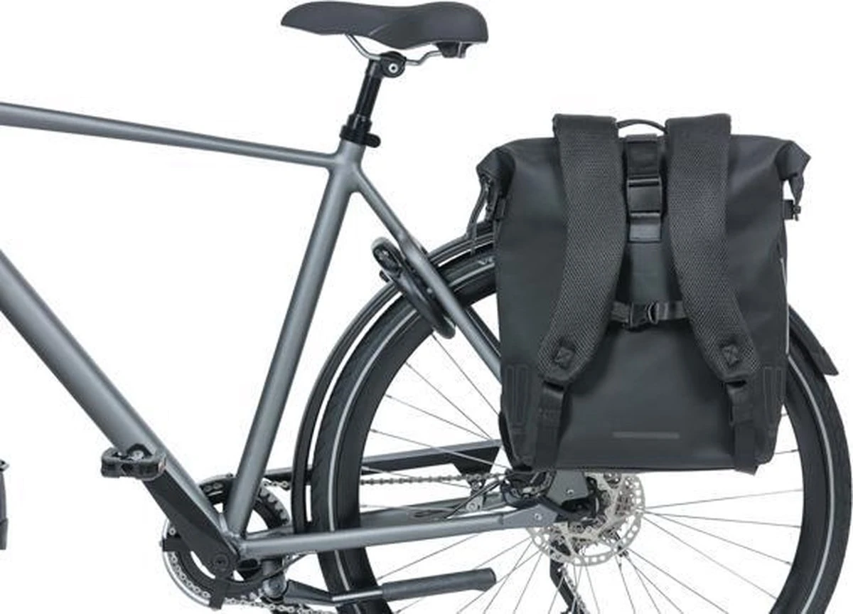 Op zoek naar avontuur in de stad? Neem dan de Basil SoHo Nordlicht fietsrugzak mee en je bent op alles voorbereid. De zwarte fietstas is namelijk voorzien van allerlei slimme functies. Zo heeft de tas een geïntegreerde LED-strip* waardoor je beter zichtbaar bent in het donker. Daarnaast is de tas waterdicht (IPX3), waardoor er geen druppel water je tas inregent. De getapete naden en de roltopsluiting dragen hieraan bij. De roltopsluiting bevestig je aan de zijkanten van de tas. Gemaakt van mat PU-materiaal dat erg zacht aanvoelt**. Op weg naar het kantoor? Dan komt de meegeleverde, uitneembare neopreen organiser goed van pas. Je bergt hier al je belangrijke spullen zoals een laptop, oplader en iPad georganiseerd in op. Na het werk door naar de Yoga of een late borrel in de tas? Met een inhoud van 17 liter neem je veel mee. Wil je geen bezwete rug tijdens het fietsen? Met het Hook-On systeem bevestig je de fietsrugzak gemakkelijk aan de bagagedrager van je (elektrische) fiets. En met hetzelfde gemak haal je deze er ook weer vanaf. Vervolgens werk je de haken netjes weg in het ritsvakje. Zo zie je niet dat de tas ook een fietstas is. De achterzijde en de schouderbanden zijn gewatteerd, waardoor je de tas comfortabel op je rug draagt. Eigenschappen: Moderne fietsrugzak met een uitneembare organiser voor bijvoorbeeld een laptop van 15.6inch. Voorzien van geïntegreerde LED-verlichting (3x AAA batterijen apart verkrijgbaar). Gemakkelijk te bevestigen aan de bagagedrager van een dames-, heren- of elektrische fiets. Ook erg geschikt voor de E-bike! *Nordlicht Technology kun je gebruiken als een aanvullende verlichting en treedt op geen enkele wijze in de plaats van de wettelijk vereiste fietsverlichting. Voor het gebruik van alle verlichting dien je te allen tijde de wettelijke regels met betrekking tot fietsverlichting van het land op te volgen. **Schuren tegen wat ruwere oppervlakten kan ervoor zorgen dat het materiaal beschadigt. De tas blijft ook dan waterdicht met dezelfde hoge IPX3 norm.