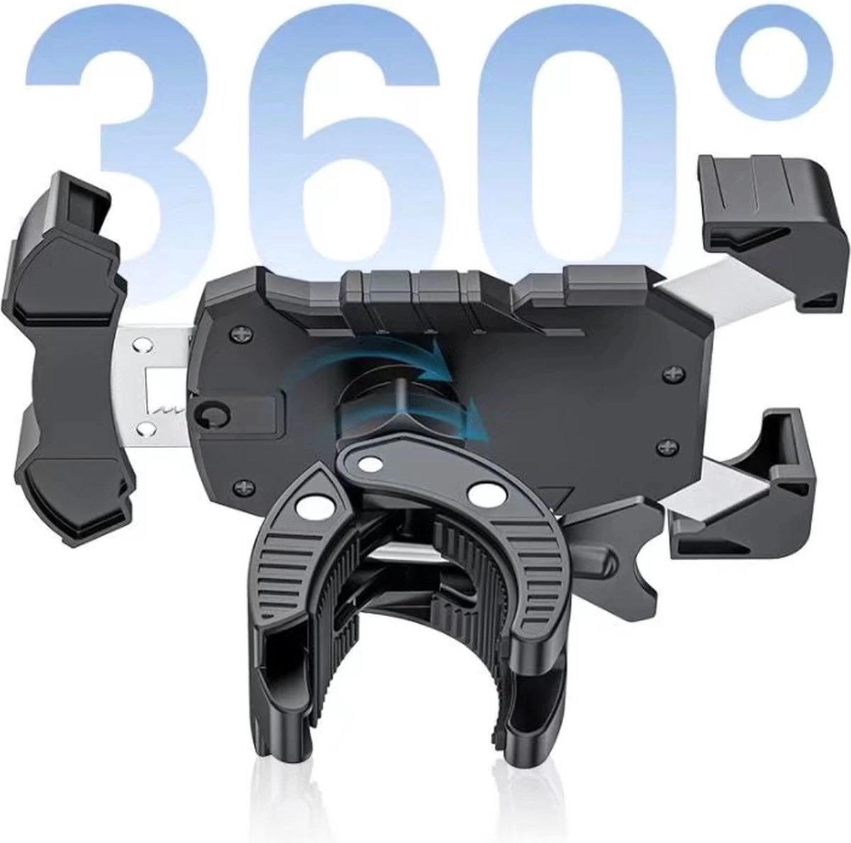 Deze mobiele telefoonhouder is supersterk en duurzaam. Het is verstelbaar voor verschillende telefoonformaten en eenvoudig te installeren op het stuur zonder gereedschap. Het is geschikt voor fietsen, scooters, motorfietsen, e-bikes, winkelwagens, hometrainers, kinderwagens, enz.