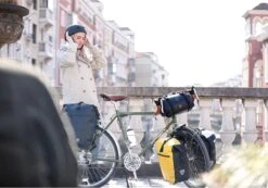 Een multifunctionale gele waterdichte fietstas.