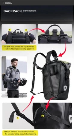 Naast een mooi design kan deze fietstas tevens dienen als rug-en/of schoudertas.