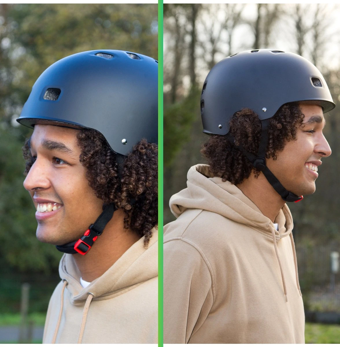 Door de verschillende maten die wij aanbieden, het bredere model en het goed doordachte design, bied de model SKATE en ongekende pasvorm die een goed passende vorm geeft maar ruimte aanbiedt voor het hoofd en haar om te ademhalen. Gecombineerd met de uitneembare en zachte padding in de helm biedt de comfortabele en goede pasvorm aan.