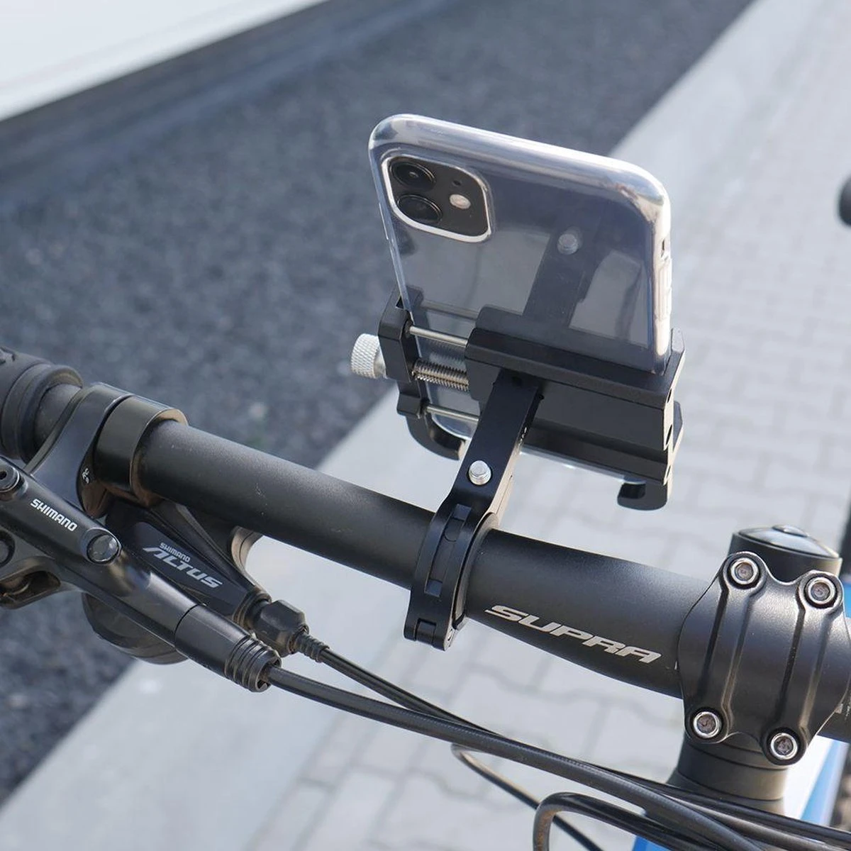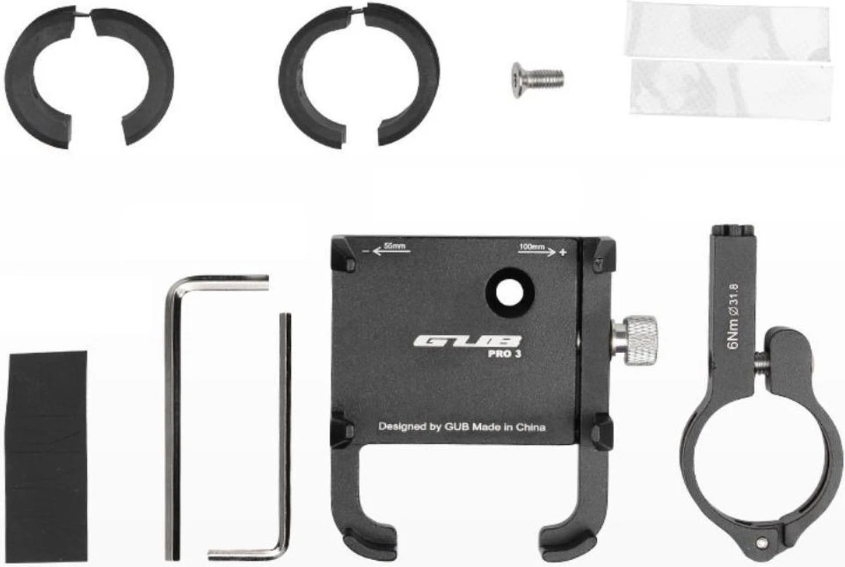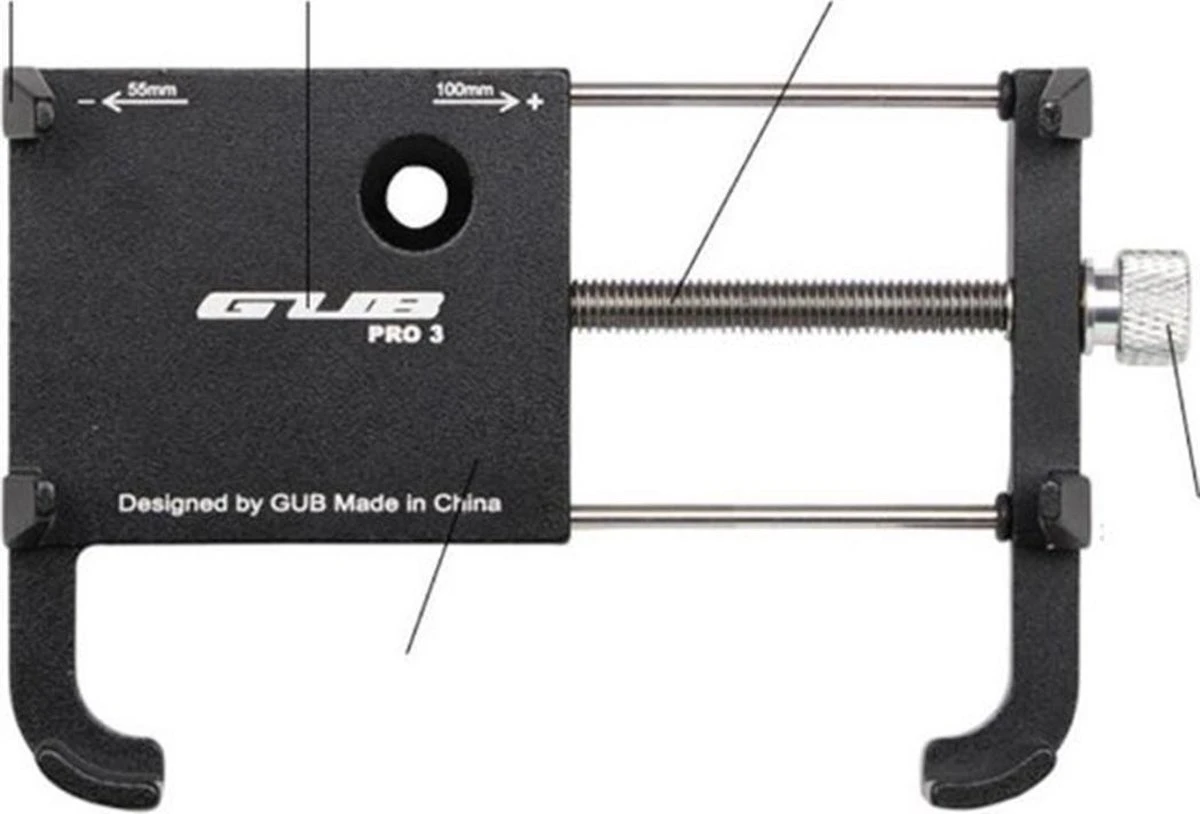 De solide aluminium houder heeft 6 klemmen waarmee de telefoon wordt vastgezet. Draai de grijze draaiknop aan de zijkant aan zodat jouw telefoon goed strak zit. Kussentjes om schade aan jouw telefoon te voorkomen worden bijgeleverd. Deze fietshouder is universeel, waardoor vrijwel alle smartphones met de houder te gebruiken zijn. Elke smartphone tussen de 55 en 100 millimeter breed past in de houder, ook als deze in een hoesje zit. De aluminium klemmen zijn zeer solide met een hoogte van 18 mm. Hierdoor is deze houder zeer geschikt voor het gebruik op een mountainbike.