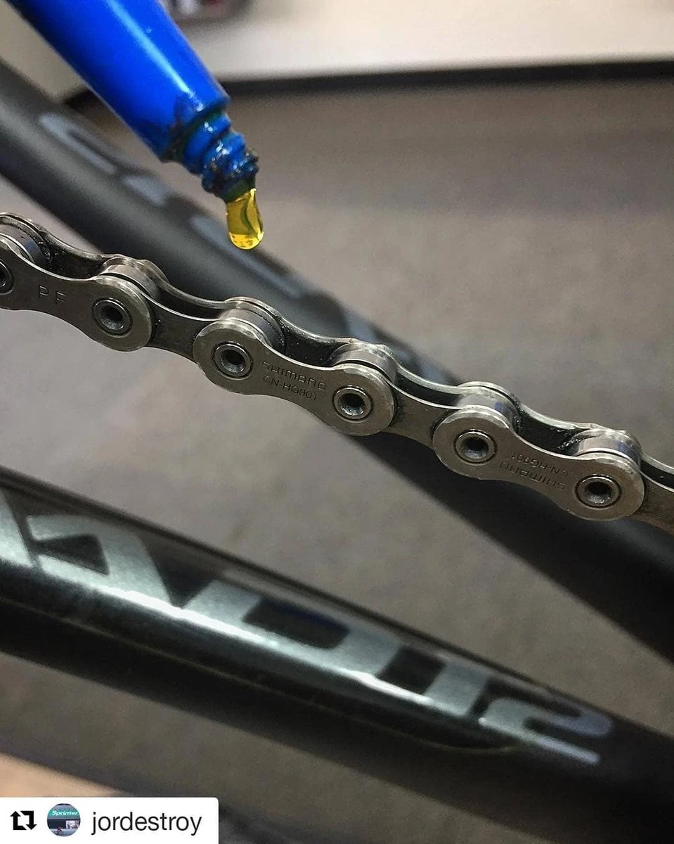 Op het einde van de video wordt er uitgelegd hoe je beidde kanten van je fietsketting moet smeren, de video begint eerst met het schoonmaken van de ketting met kettingreiniger