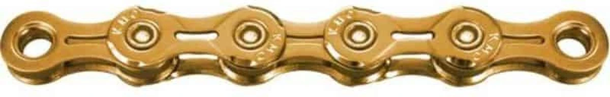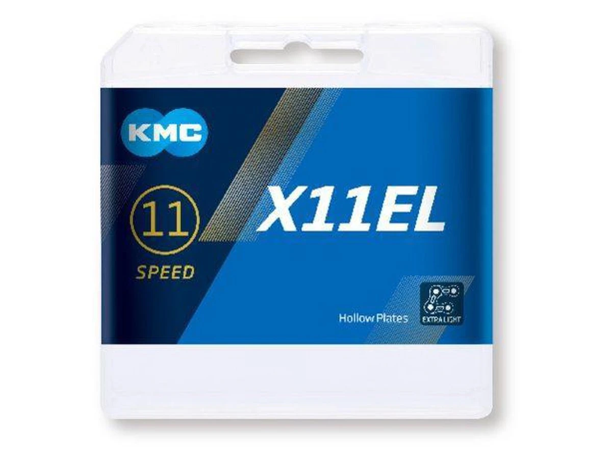 De KMC X11EL. EL staat voor extra light. De ketting is namelijk gemaakt van een titanium nitride coating. Deze harde laag zorgt voor een slijtvaste ketting, licht gewicht en snel schakelen. En is de opvolger van de KMC X11 L uitvoering.Lage verzendkosten kettingVerzendkosten één ketting NL: €4,90Boven €49,- geen verzendkosten!Kettingen kunnen geleverd worden in oem bulkverpakking.Alle KMC kettingen zijn door de bijgeleverde ‘missinglink’ eenvoudig met de hand te monteren en te demonteren. Ook voor ATB.Optisch gezien is de kleur bijzonder, maar ook de open gewerkte binnenschalen.Vanwege zijn gebruiksgemak, laag gewicht, zachte en snelle schakelen en slijtvastheid staat de KMC X11EL Silver bekend als het meest hoogwaardige ketting ter wereld. Een stap verder gaat de KMC X11SL (), hierbij zijn ook de pennen uitgefreesd. KMC X11 EL Silver:- Compitabel voor alle Shimano, Campagnolo en SRAM 11 Speed groepen.- Inclusief Silver missing link- 118 kettingschakels- Vederlicht: slechts 245g- Uitgevreesde gleuven in de schakels.- Eenvoudig demonteren en monteren- Snel schakelen- Slijtvast- Titanium coating