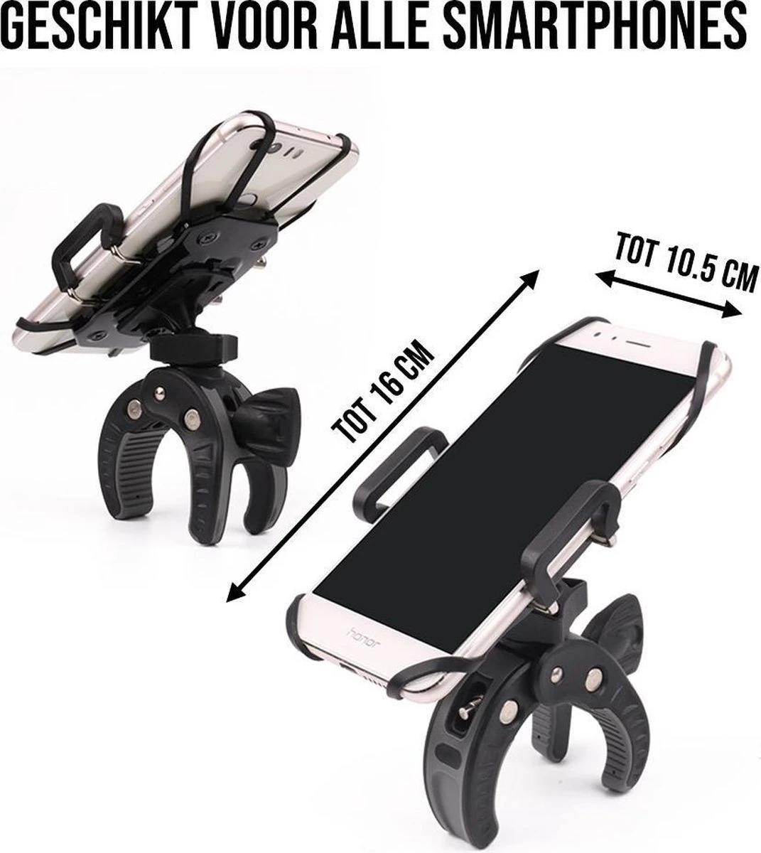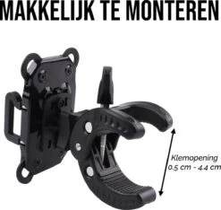 De unieke gepatenteerde kraaienpoot stuurklem zorgt ervoor dat je de telefoonhouder op bijna ieder voertuig kunt installeren. Of je nou een telefoonhouder voor je motor, fiets of kinderwagen zoekt. Wanneer je een stang hebt met een diameter tussen de 0.5 cm tot 4.4 cm om de houder voor je telefoon op te monteren, is het mogelijk!