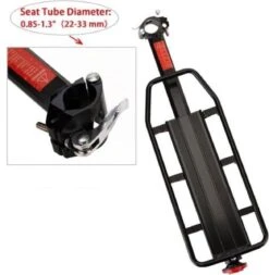 Wil jij graag een bagagedrager op je mountainbike of racefiets? Deze superhandige universele bagagedrager met zadelpenbevestiging is hier uitstekend geschikt voor. Deze bagagedrager is gemaakt van een duurzame aluminium legering. Het kan een gewicht aan van maximaal 52KG. De bagagedrager heeft een lengte van 53cm, een breedte van 15 cm en een hoogte van 40 cm (uitgeklapt).