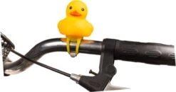 Ben je opzoek naar een fietsbel, maar wil je net even iets orginelers? Wat dacht je van deze piepende eend met LED licht voor op de fiets? Met deze vrolijke gele badeend pimp je jouw fiets. Je monteert het eendje heel eenvoudig aan je stuur. Door in het badeendje te knijpen begint hij vrolijk te piepen. Dus handig als bel te gebruiken. Door het LED lampje geeft het eendje ook nog eens licht. Zo ben je extra goed zichtbaar als je in het donker fietst. Bovendien brengt deze eend een lach op ieders gezicht als jij voor bij rijdt.