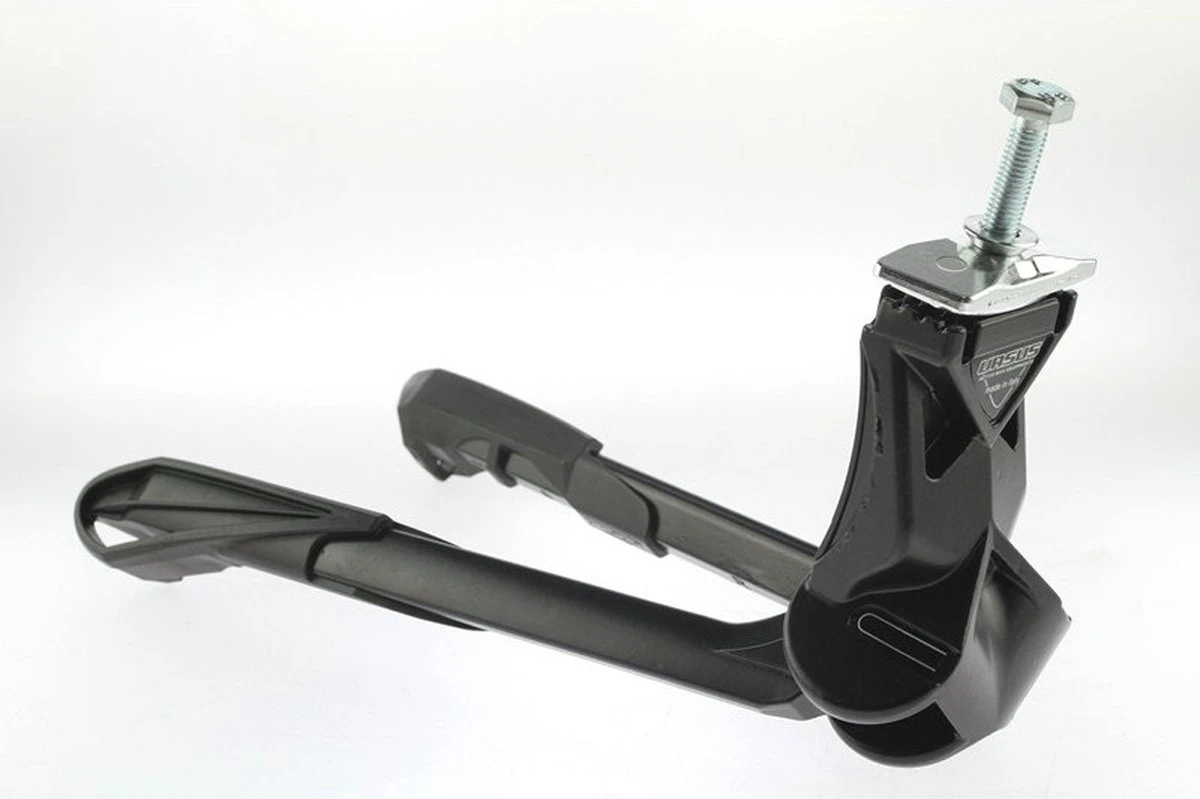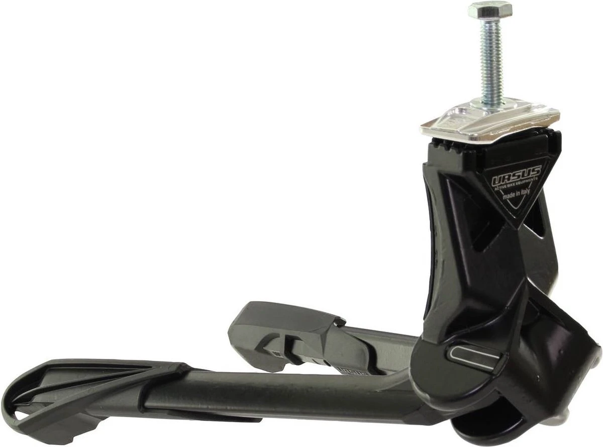 De Ursus Jumbo is een volledig aluminium dubbele standaard. Deze standaard combineert de stabiliteit met mechanische innovatie. De gepatenteerde mechanica zorgt ervoor dat de afstand tussen de twee poten verbreedt tot 40cm waardoor de fiets altijd stabiel gestald kan worden. Productspecificaties: 40cm brede poten wanneer uitgeklapt 20cm brede poten wanneer ingeklapt 300 millimeter lang Belastbaar tot 80 kilogram Gemaakt van sterk aluminium