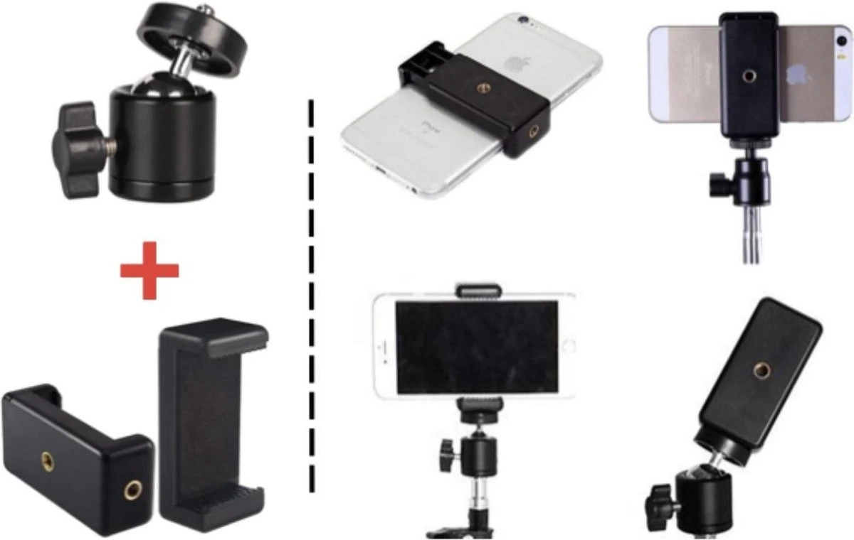 1Pcs Universele Beugel Telefoon Clip Zwart Abs Shell Universele Dubbele Lente Telefoon Beugel Statief Connector Anti-Slip Telefoon clip + 360 ° Draaigreep