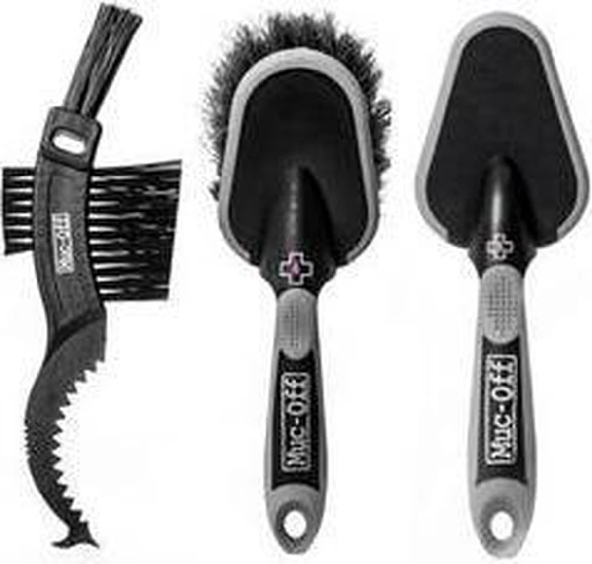 De Muc-Off 3-Brush set is ideaal om het frame en onderdelen schoon te maken