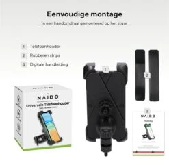 Disclaimer: Qnation en/of Naido is ten alle tijden niet aansprakelijk voor schade aan je telefoon bij gebruik. Zorg er voor dat je de bevestiging en de plaatsing van de telefoonhouder én je telefoon controleert alvorens je begint met fietsen of rijden.