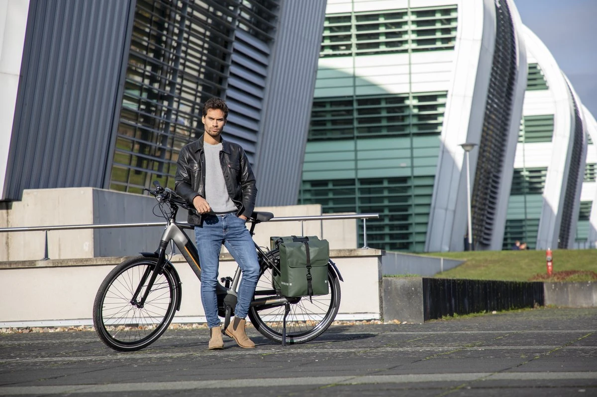 De Odense dubbele fietstas is beschikbaar in zwart en groen.
