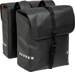 Ben je op zoek naar een dubbele fietstas gemaakt van sterk materiaal en een stoer uiterlijk? Deze ruime fietstas past op MIK dragers.
