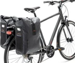 Voorkom natte spullen met deze 100% waterdichte fietstas. Deze handige dubbele tas is snel afneembaar en biedt heel veel ruimte om spullen mee te nemen.