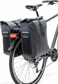 De tas is afgewerkt met reflectie aan beide zijden voor extra veiligheid in het donker.
