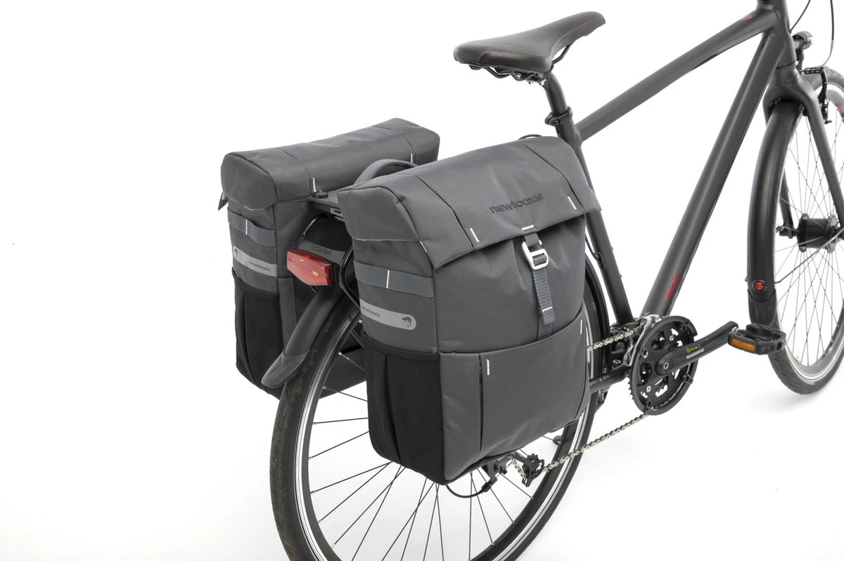 Sportieve dubbele fietstas die ook snel afneembaar is. Deze dubbele tas past op MIK bagagedragers.
