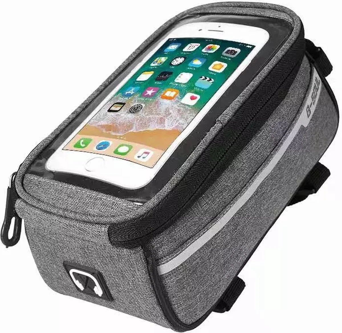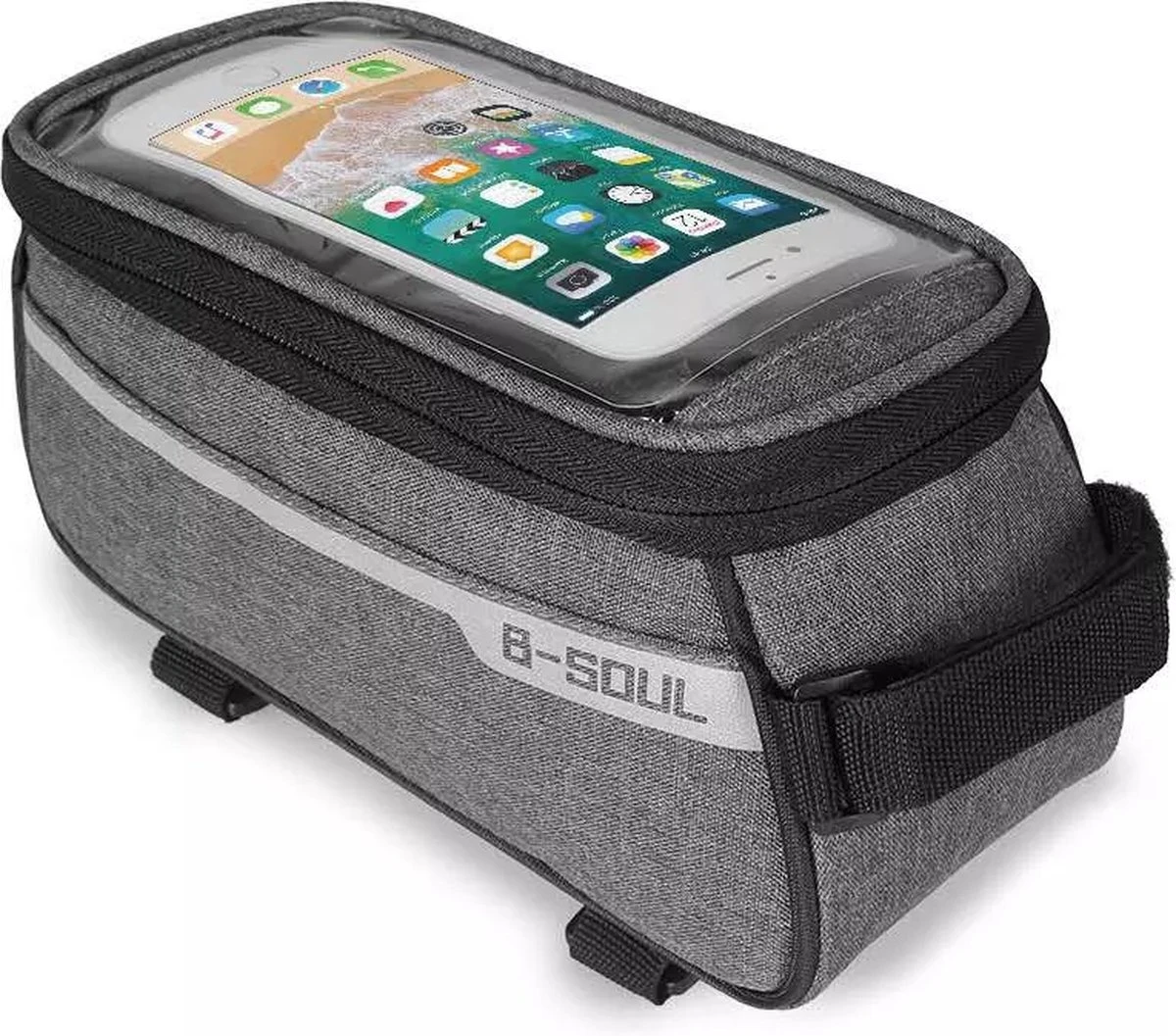 Een stijvolle waterdichte fietstas die zeer gemakkelijk te bevestigen is door middel van klittenband. Bewaar gemakkelijk je items in deze tas, denk bijvoorbeeld aan je sleutels, portemonnee, je telefoon en nog veel meer.