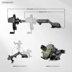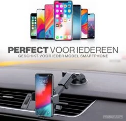 Het is verboden om je telefoon in de hand te houden wanneer je autorijdt. Toch is het soms wel heel handig dat je je toestel, natuurlijk veilig en verantwoord, kunt gebruiken. Dankzij deze telefoonhouder van Phonebuddy kun jij op een goed manier je toestel op voorruit en dashboard bevestigen, en dan toch alle aandacht bij het verkeer houden.