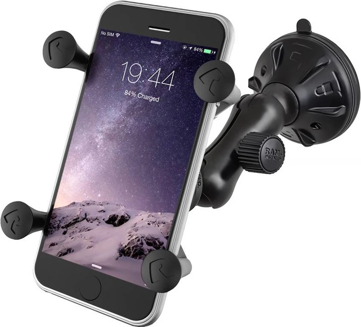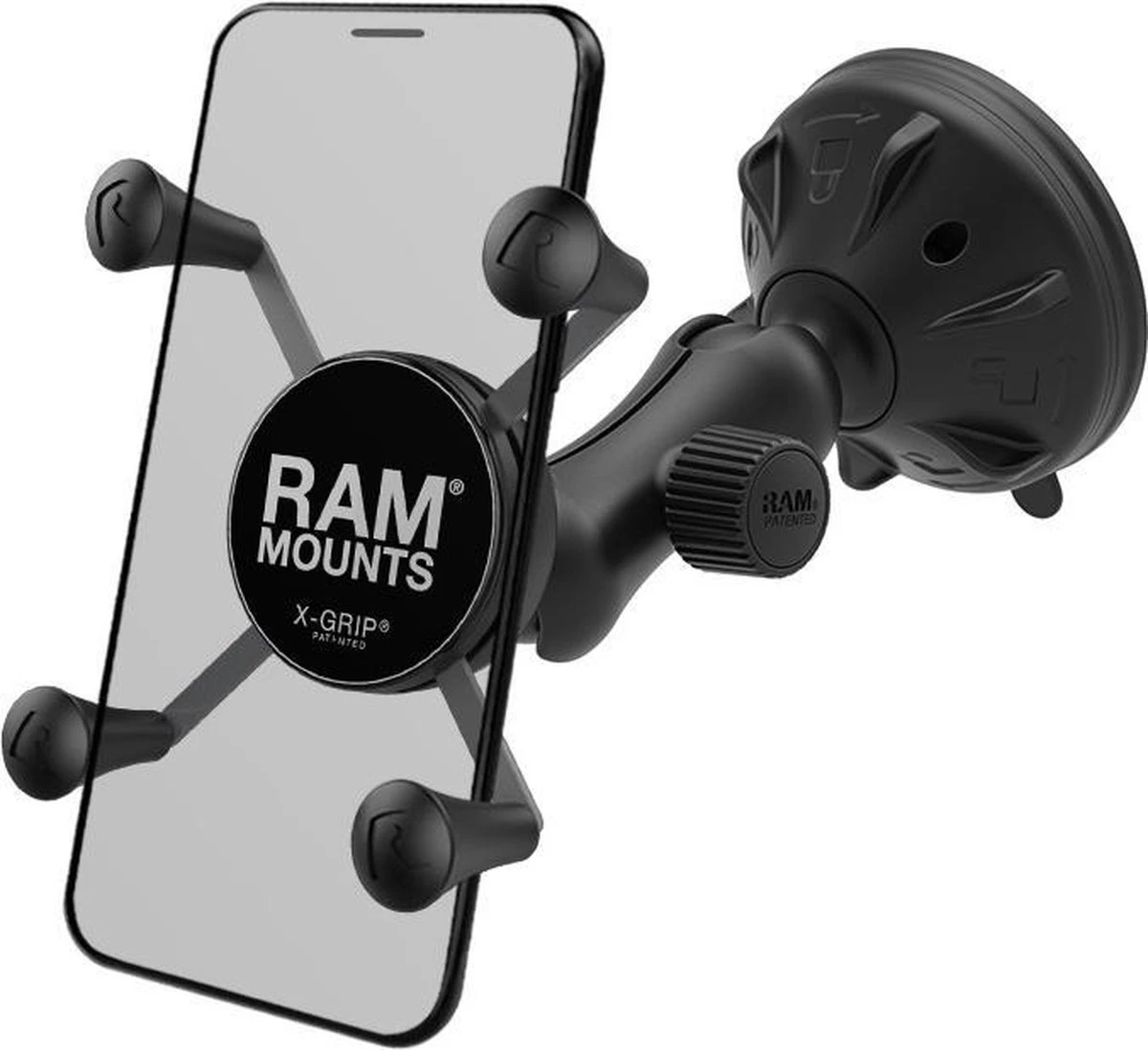 Deze bestseller uit het RAM-assortiment is vervaardigd uit stevig composietmateriaal. Met zijn 7 cm twist lock-zuignap houdt hij op alle gladde, niet poreuze materialen alsof er sprake is van vaste montage. Met het gepatenteerde kogel- en armsysteem is de houder in elke gewenste kijkhoek verstelbaar, én is hij trillingsdempend. De universele X-Grip® is geschikt voor de meest voorkomende smartphones. Controleer de afmetingen aan de hand van onderstaande gegevens. Door het slimme ontwerp met de vier verende armen met rubberen tips, blijft je smartphone zelfs onder zware omstandigheden perfect op zijn plaats.