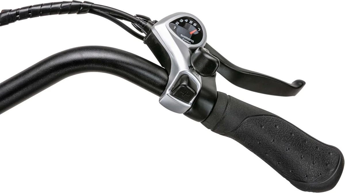 Elektrische fiets met een 10Ah accu en 250watt motor in het achterwiel. Deze combinatie zorgt voor een actieradius tussen de 40-65km. De fiets beschikt over een aluminium frame met een gewicht van 29kg. De fiets is uitgevoerd met 7 versnelling van Shimano en 5 speeds trapondersteuning. De fiets wordt standaard geleverd met een bagage drager.