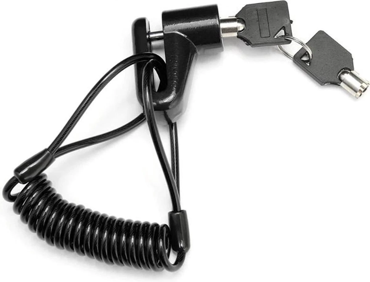 Het schijfremslot is geconstrueerd met een hoogwaardige behuizing van gelegeerd staal en een geavanceerd glad oppervlak. De binnenste structuur van de slotcilinder is zeer complex en kan alleen met een bepaalde sleutel worden geopend. Dit alles maakt het bijna onmogelijk om het slot af te zagen, open te breken en gewelddadig openen. Verder is de slotpen van 5.5 mm gehard staal en is het slot watervast.
