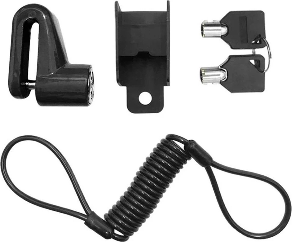 Schijfremslot van hoogwaardig gelegeerd staal voor Motor / Scooter / Elektrische Step / Fiets met reminder kabel en handige houder.