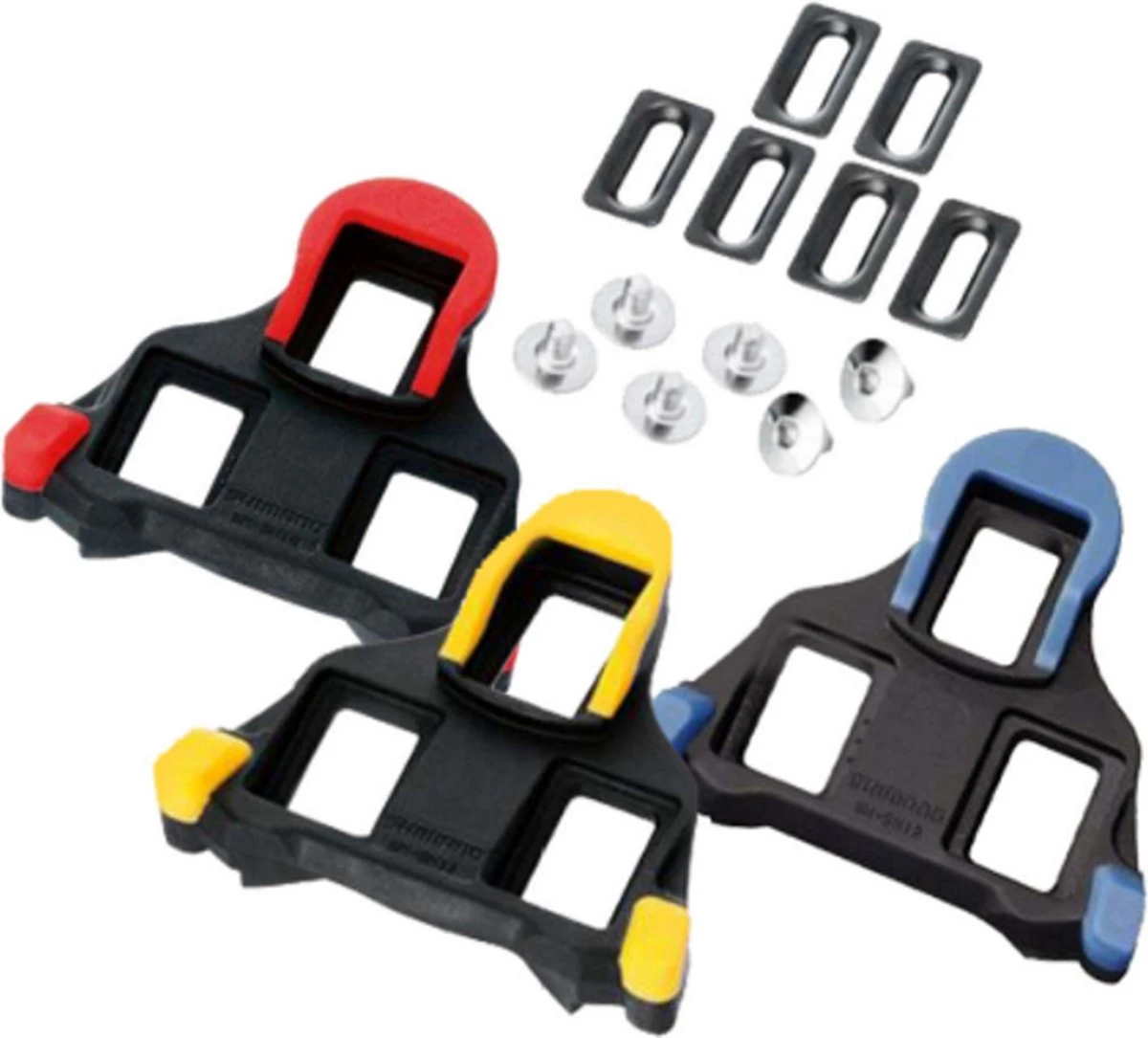 De standaard schoenplaatjes die geleverd worden bij Shimano SPD-SL pedalen.