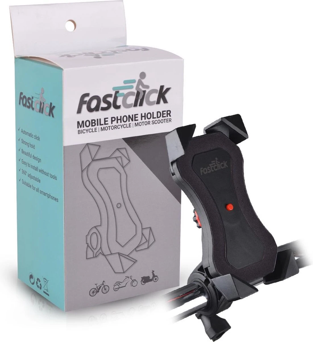 De FastClick telefoonhouder voor op het stuur van je fiets, scooter, motor of zelfs je step zorgt ervoor dat jij veilig de weg op kunt gaan en, wanneer het kan, ook je telefoon gemakkelijk kunt bedienen. En met de unieke automatische klikbevestiging zit je smartphone binnen een seconde muurvast.
