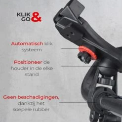 - Click! En de smartphone zit vast in de houder. Je kunt de houder links- of rechtsom draaien om de gewenste stand van je smartphone te hebben tijdens je rit.