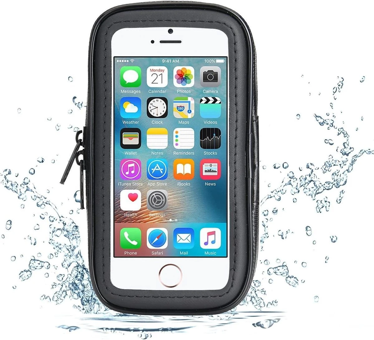 Fiets telefoonhouder – smartphone houder – stevig en waterdicht – ook voor GPS – maat XL Veilig aan het verkeer kunnen deelnemen op je fiets en toch alle opties van je smartphone kunnen gebruiken. Deze smartphone houder is waterproof en shockproof. De houder kan eenvoudig worden gemonteerd op het stuur van je fiets voor een optimale stand van je smartphone. Maar natuurlijk is de smartphone houder ook geschikt voor een brommer. Je kan deze telefoonhouder heel eenvoudig bevestigen met behulp van een handige schroef. Zo weet je zeker dat de smartphone houder stevig blijft zitten gedurende de hele rit. Ook op dat terrein zijn jouw smartphone of GPS systeem dus echt helemaal veilig. Het model is uitgevoerd in zwart. Neem geen risico’s in het verkeer en gebruik de stevige telefoonhouder. Geschikt voor diverse smartphones.