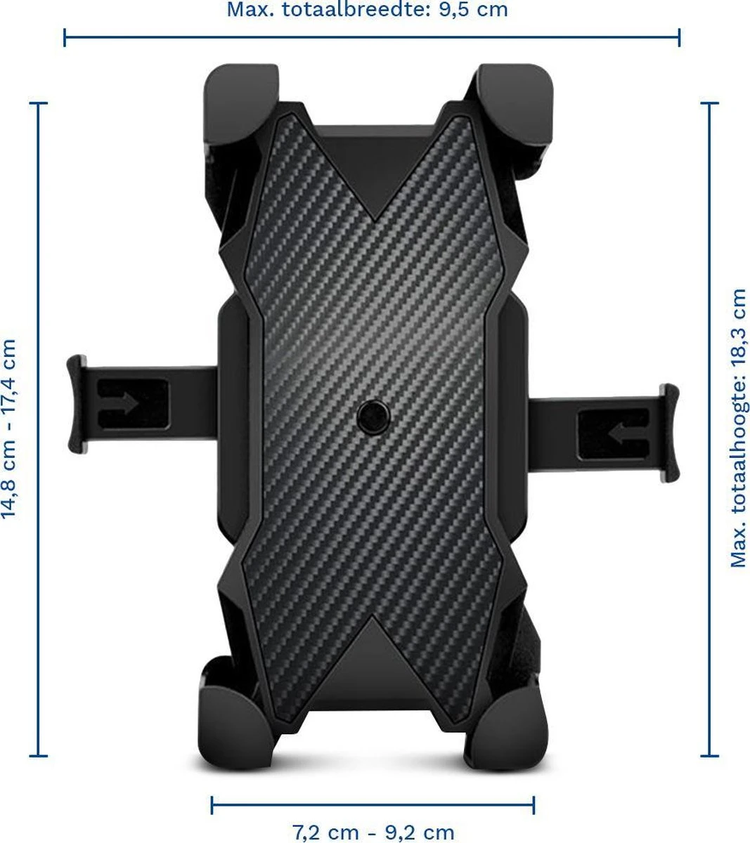- Maximale breedte smartphone: 9,2 cm