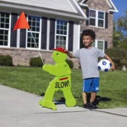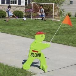 Veiligheidsmannetje 80cm / 150cm Ter bescherming van spelende kinderen in gebieden waar hard gereden wordt Goed zichtbaar alarmeringsteken: fluorescerend groen met reflecterende streep en waarschuwinsgvlag Hoogte is ca. 80 cm, inclusief vlag is dit ca. 130 cm De brede voet kan gevuld worden met zand om omvallen te voorkomen Makkelijk te verplaatsen. Victor Veilig is een veiligheidsproduct waarmee je weggebruikers laat weten dat er (spelende) kinderen in de buurt zijn.