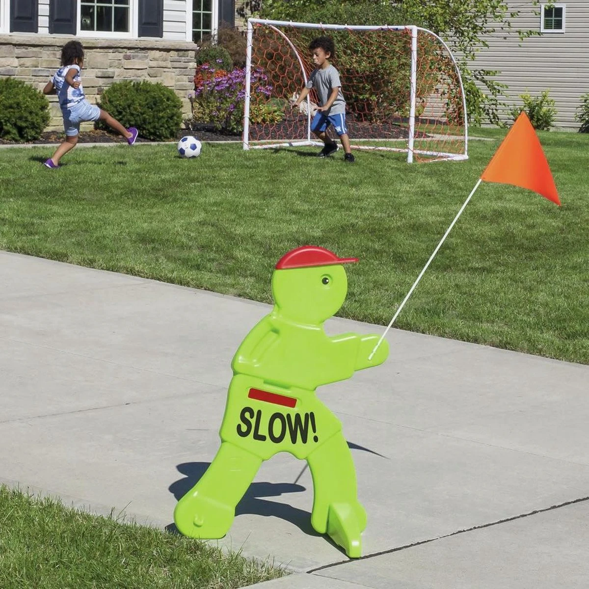 Zet Victor Veilig altijd buiten als kinderen in de wijk gaan spelen; dankzij het lichte gewicht en de handvat is deze eenvoudig overal te plaatsen.