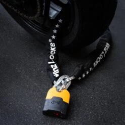 Met zijn 4,7kg is dit kettingslot niet zwaar voor een volledig goedgekeurd motorslot.