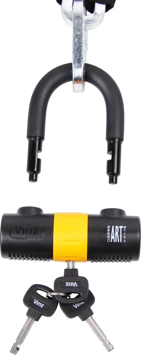 De Trivor sloten van VINZ zijn uitstekend te gebruiken voor het beveiligen van je motor of scooter tegen diefstal. De sloten hebben het keurmerk ART 4 en zijn daarmee geschikt voor bijna alle diefstalverzekeringen. Bekijk wel altijd goed de specifieke voorwaarden van de verzekeraar. De sloten zijn gemaakt van gehard staal en hebben een afsluitbaar sleutelgat. Dit voorkomt ophoping van vuil en water, waardoor het VINZ slot een langere levensduur heeft. Het kettingslot van VINZ is tevens te gebruiken als bootslot.