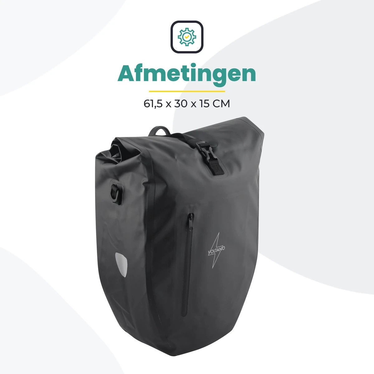 Voltano Luxe Fietstas 28L – Enkele Pakaftas – Zwart – 100% Waterdicht
