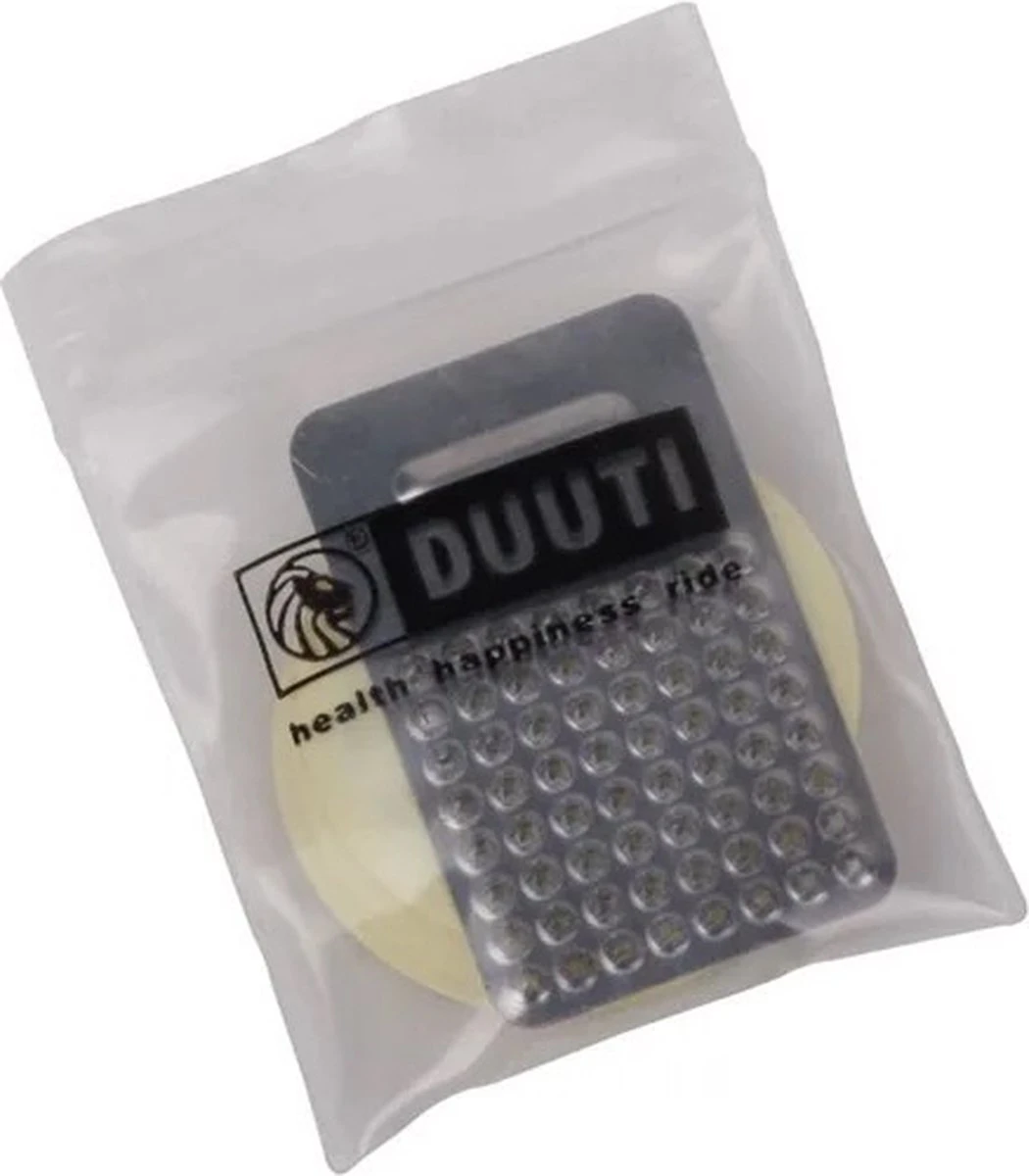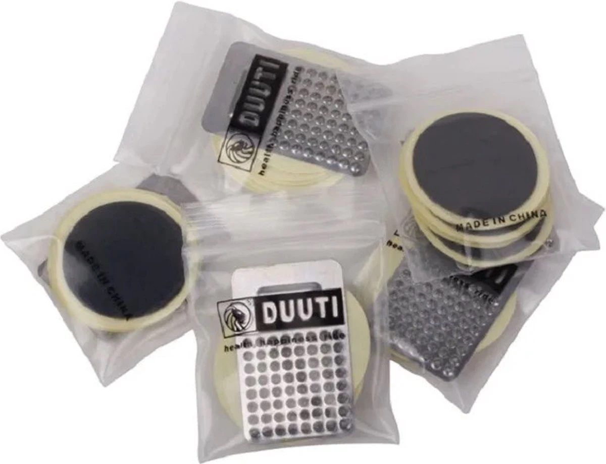 Set van 15 zeer sterk zelfklevende bandenplakkers: 10 ronde en 5 vierkante bandenplakkers. Inclusief gratis metaalrasp voor opruwen band.